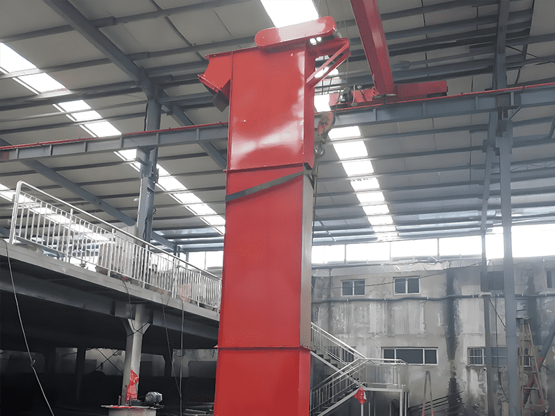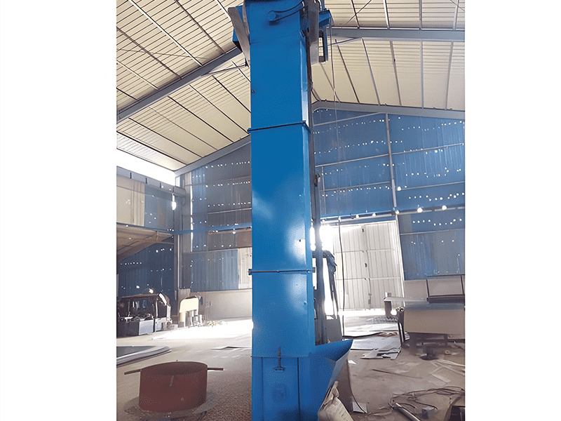 • 输送链条或带式传动:斗式提升机通过链条或带式传动系统,将装载物料的斗从进料口向上运行。